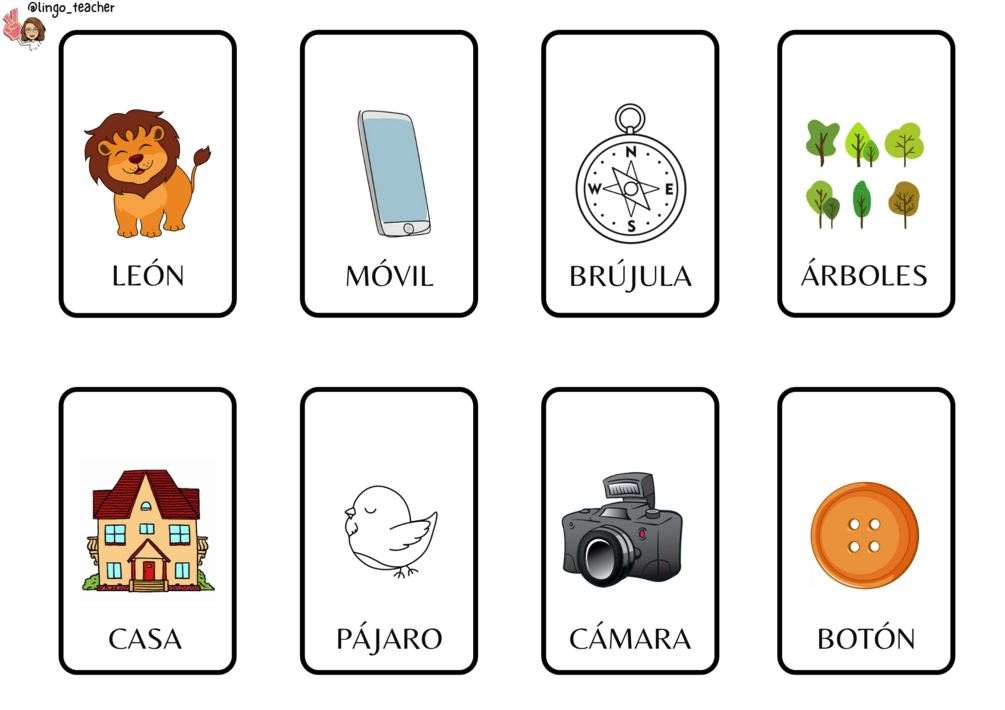 Conjunto de cartas visuales para trabajar la acentuación, el vocabulario en inglés, la identificación de objetos e infinidad de posibilidades más